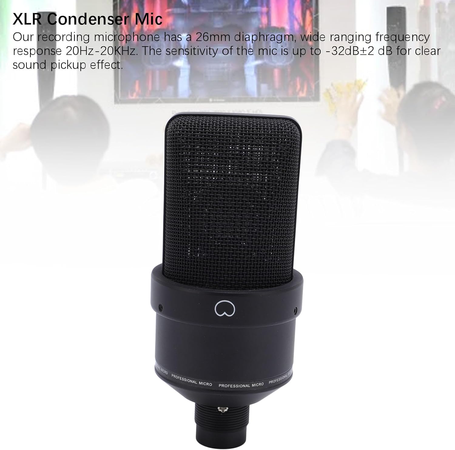 1. XLR Condenser Mic: Our recording microphone has a 26mm diaphragm, wide ranging frequency response 20Hz-20KHz. The sensitivity of the mic is up to -32dB±2 dB for clear sound pickup effect.