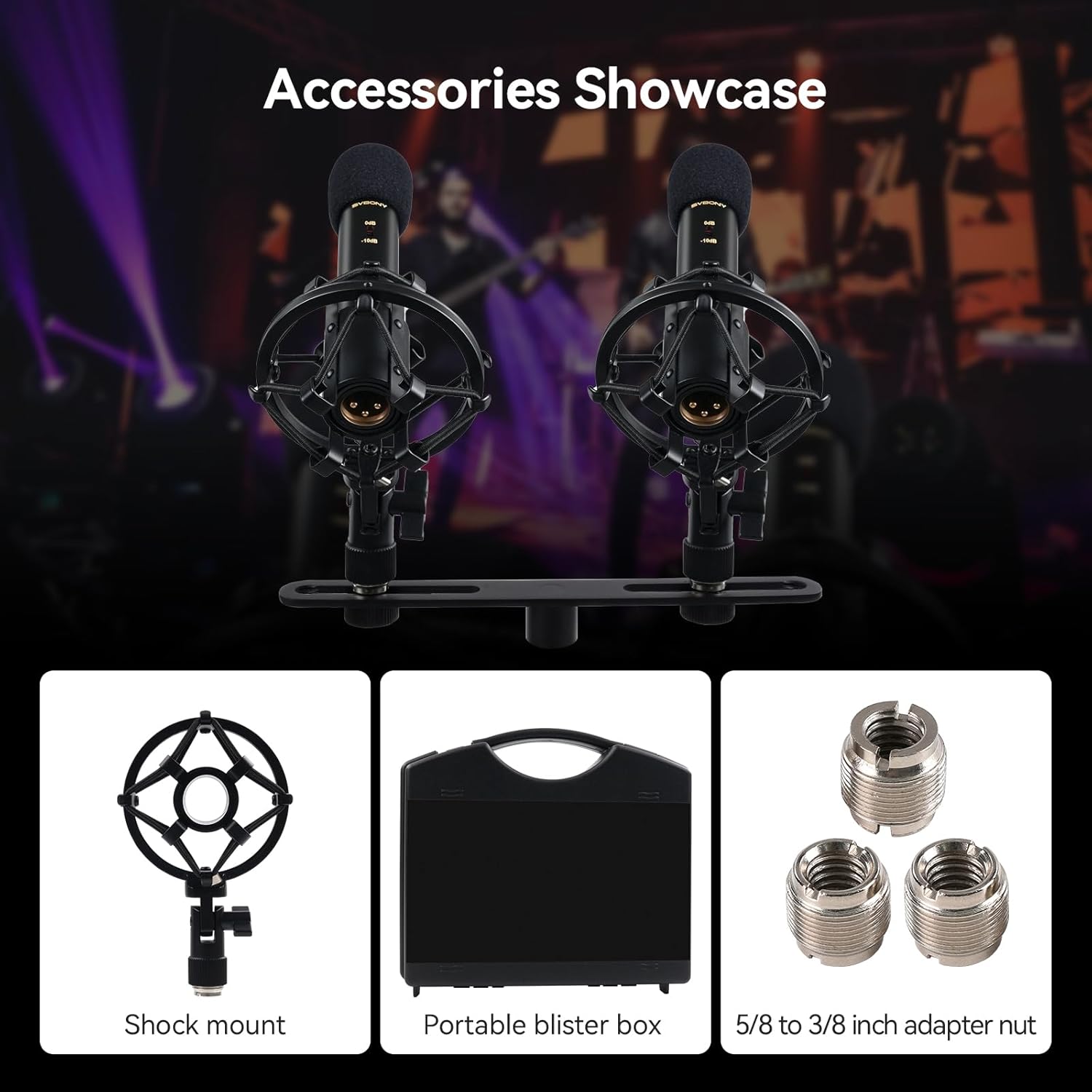 Stereo sound capture: 2 packs Pencil Stick Condenser Mic in combination; featuring advanced stereo pickup technology; capturing every nuance and dimension of your instrument; unleashing the full potential of your musical creations and performances
