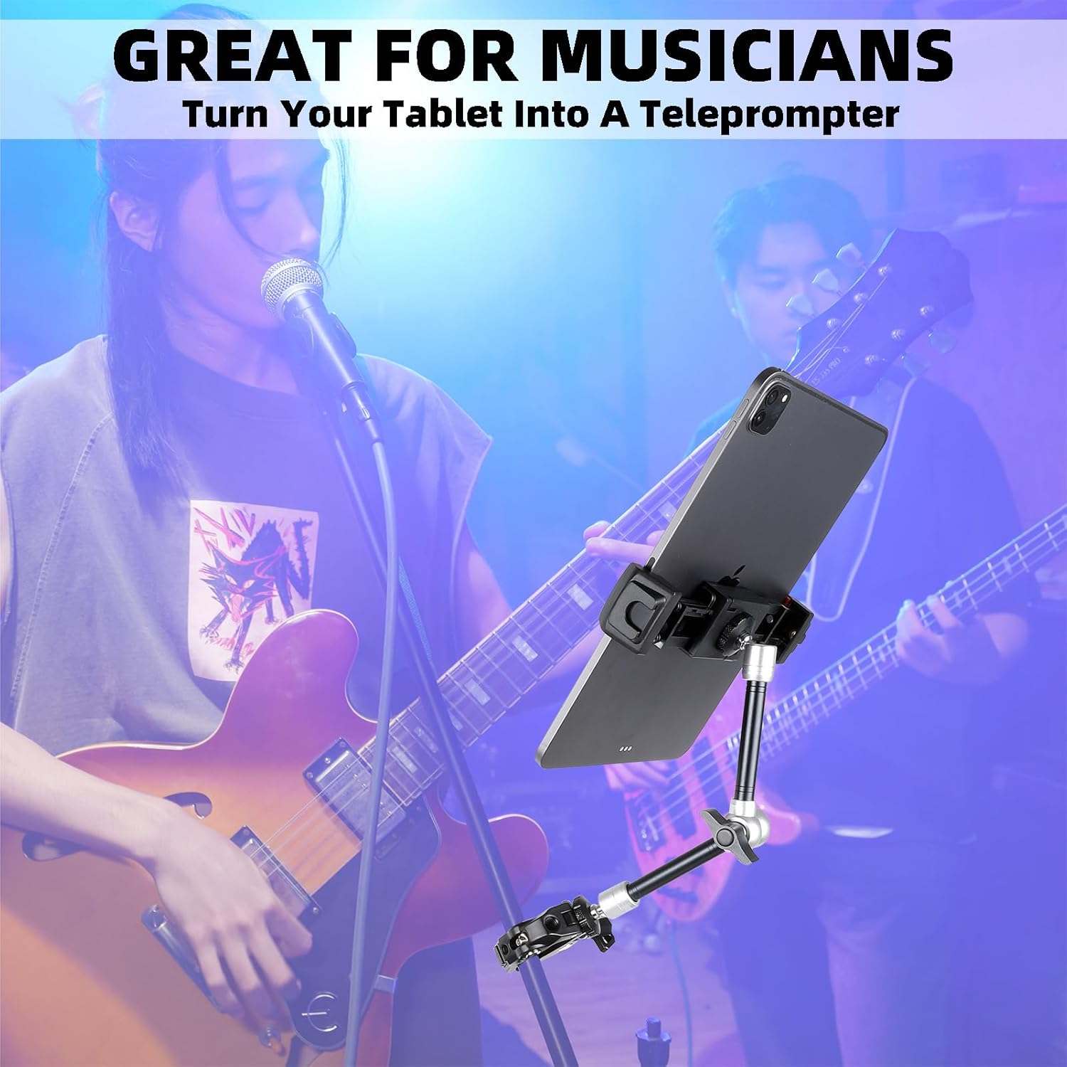 Perfect for Live Performances & Hands-Free Viewing: Designed for musicians, singers, and presenters, this tablet holder lets you securely mount your tablet or smartphone to display lyrics, chords, or control audio tracks during live shows, choir rehearsals, weddings, or conferences. A must-have for hands-free, adjustable access to your digital sheet music or scripts!