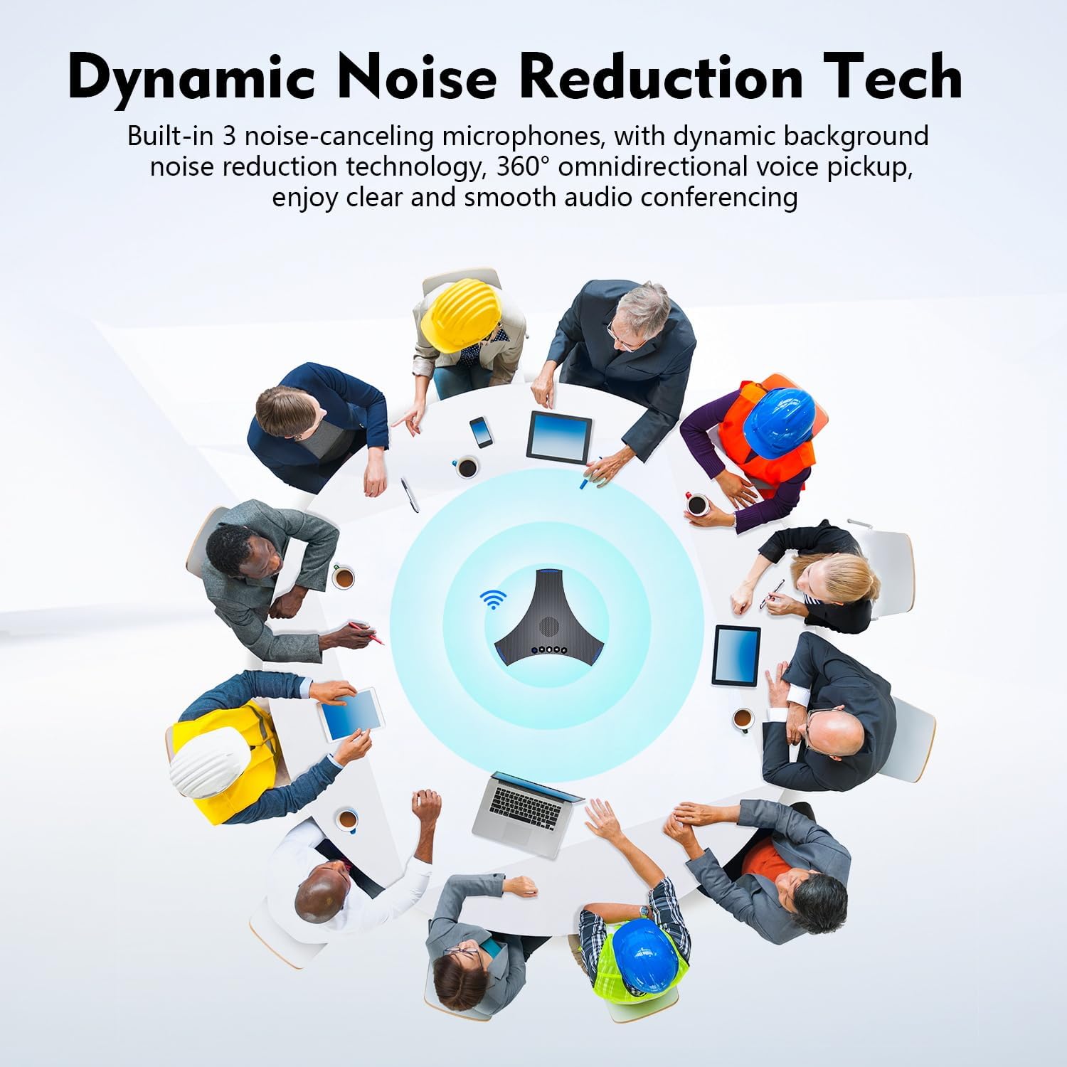 【360° Omnidirectional Speakerphone】TOALLIN S68 professional conference speakerphone equipped with 3 noise-reducing microphones, with dynamic background noise-reduction technology, echo cancellation, 360° omnidirectional voice pickup, enjoy clear and smooth video conferencing.