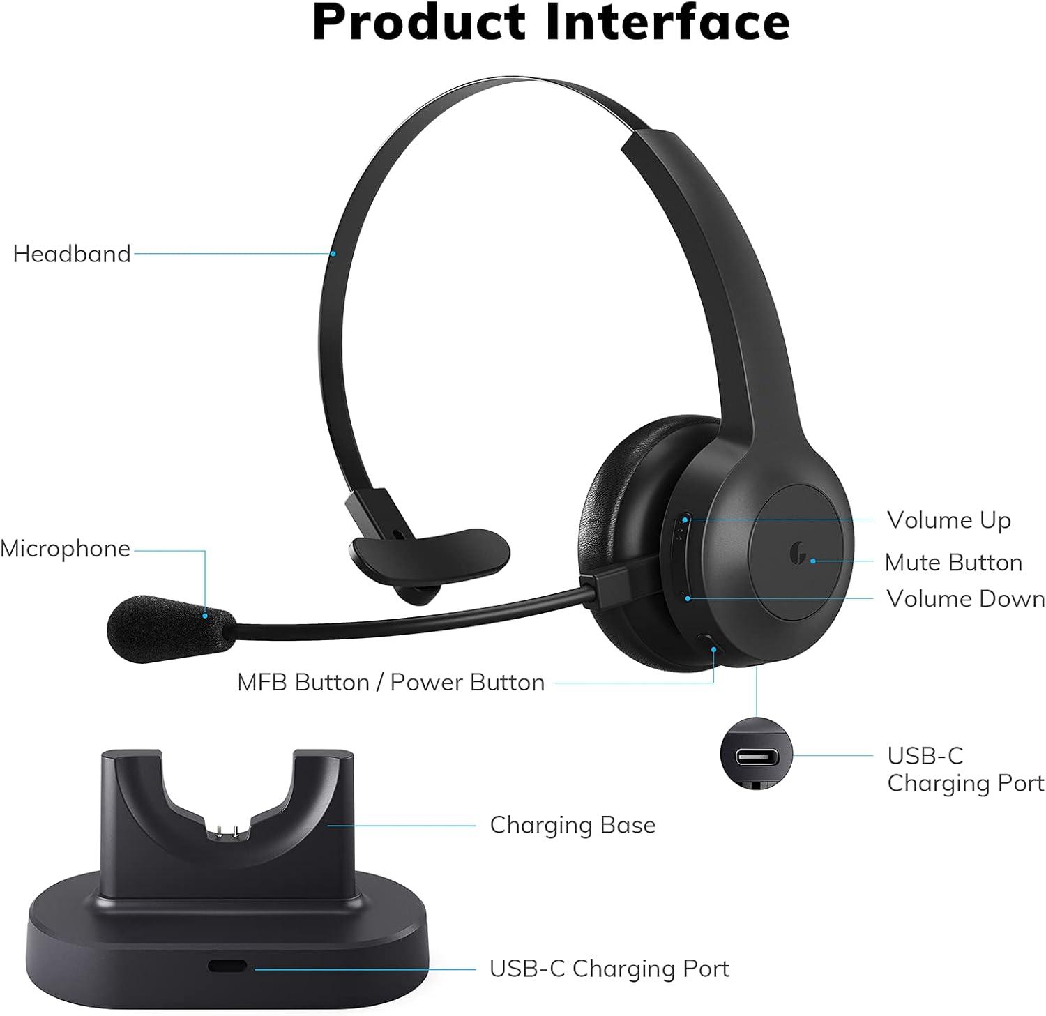 Wide Compatibility: The wireless headsetwith microphone is widely compatible with smartphones, computers, PC, tablets, etc. It provides a stable connection within Zoom, Skype, Microsoft Team, WebEx, and Facetime; Great Bluetooth headset for truck drivers, WFH, warehouses, call centers, etc