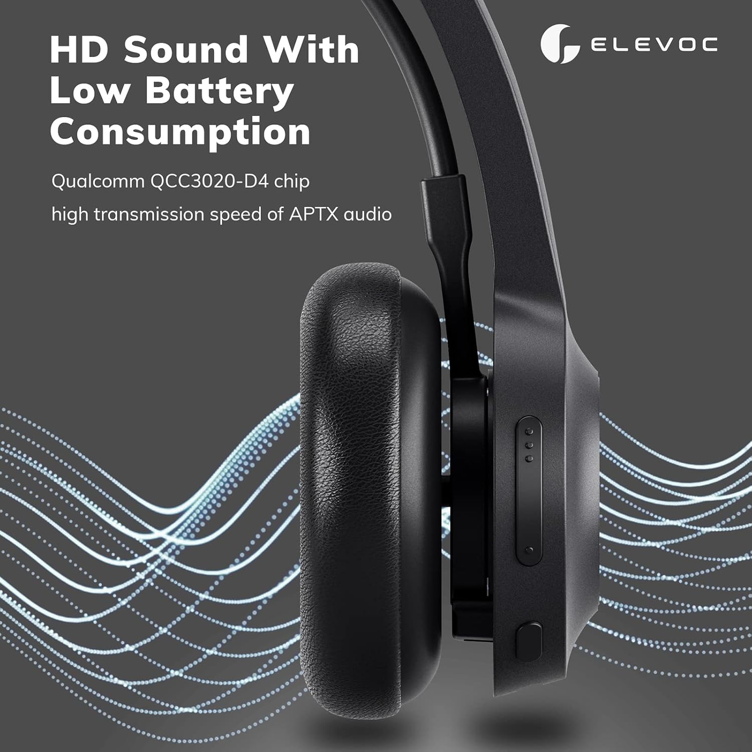 High-definition sound, no more latency: The telephone headsets by Elevoc features a Qualcomm QCC3020-D4 chip, known for its high transmission speed of APTX audio to ensure High-Definition sound. Designed for real-time data transmission with the lowest battery consumption in the market; No more latency, delays, or saturation