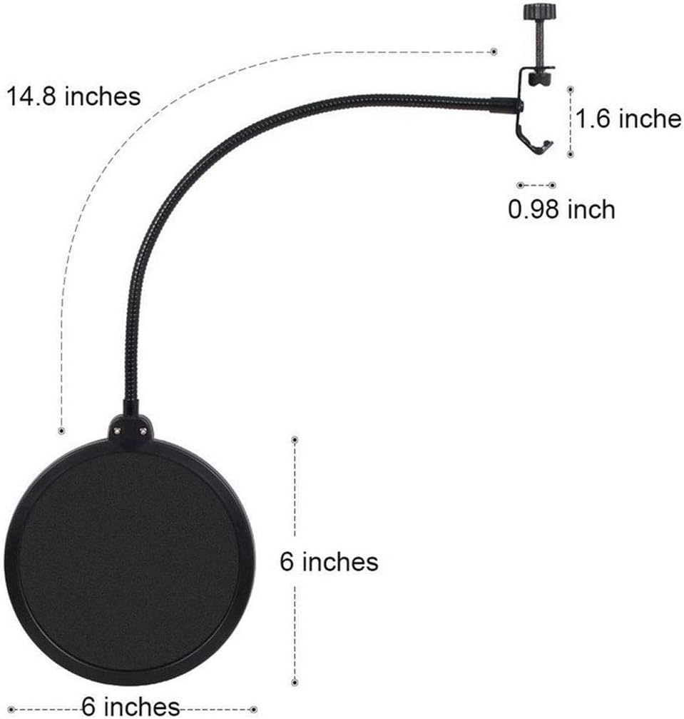 About the product Double Layered Screen Pop Filters: The first screen blocks air blasts as any pop filter normally would; The gap in between then disperses any remaining air pressure, so by the time it passes the second screen, the blast is easily contained to produce great quality recordings. Universally Compatible: Adjustable screw rotating clamp with scratch-proof gripper can secure variety tubular mounting booms or microphone stands. Eliminates anyone’s extra elements that prevents them from recording/projecting their best vocals to the public or their audience. Adjustable Gooseneck: The steel metal gooseneck holder fully supports the filter’s weight and keep it in place. You can adjust the angle and distance between the screen and the microphone to best fit your needs for yours lovely voice. Functions: Banish the dreaded hissing and lisping sounds that come when pronouncing the letter “S” and blocks those ugly “plosives” that follows “B” and “P”. It is a great item for singers, streamers and actors alike who want help achieving the best possible performance and help protect the spitting all over your personal microphone. Easy To Use: Swivel mount for easy installation, removal and location adjustment. Description: Material: metal + plastic Size: diameter 15.5cm / 6.1inch; rod length 37.5cm / 14.76inch