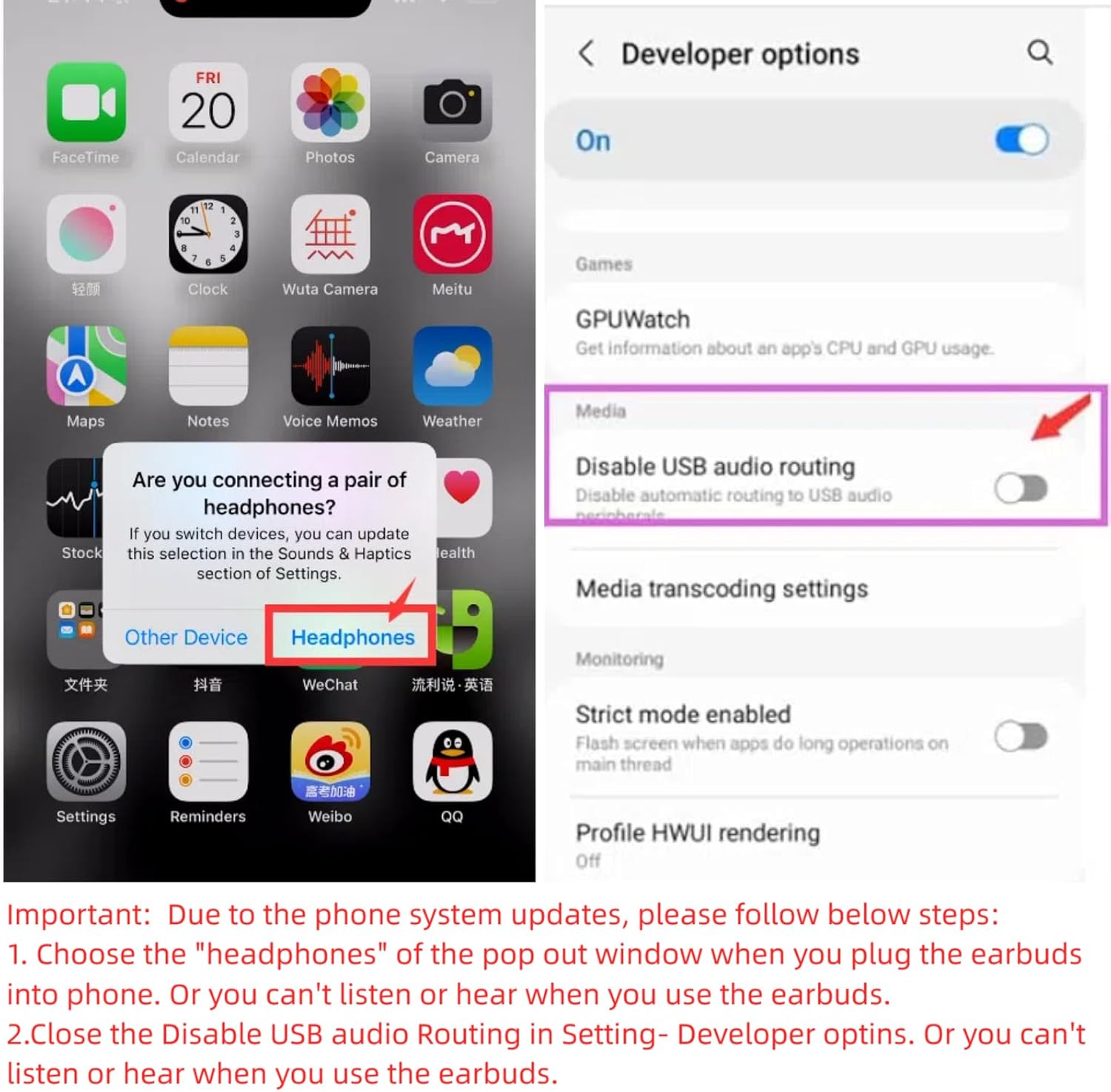 Secure Fit and Stereo Sound: In-ear design earbuds block the noise outside to achieve outstanding sound quality. The shape of the earbuds is unique and ergonomic, makes it a good looking accessories for your phone or other usb c devices, It will fits-nicely for long time comfortable wearing, Comes with 2 extra silicone tips S or L for your choices, NOTE: If the earbuds has No Sound when using on mobile, go to Setting-Developer Options, find Disable USB audio routing, Close this option