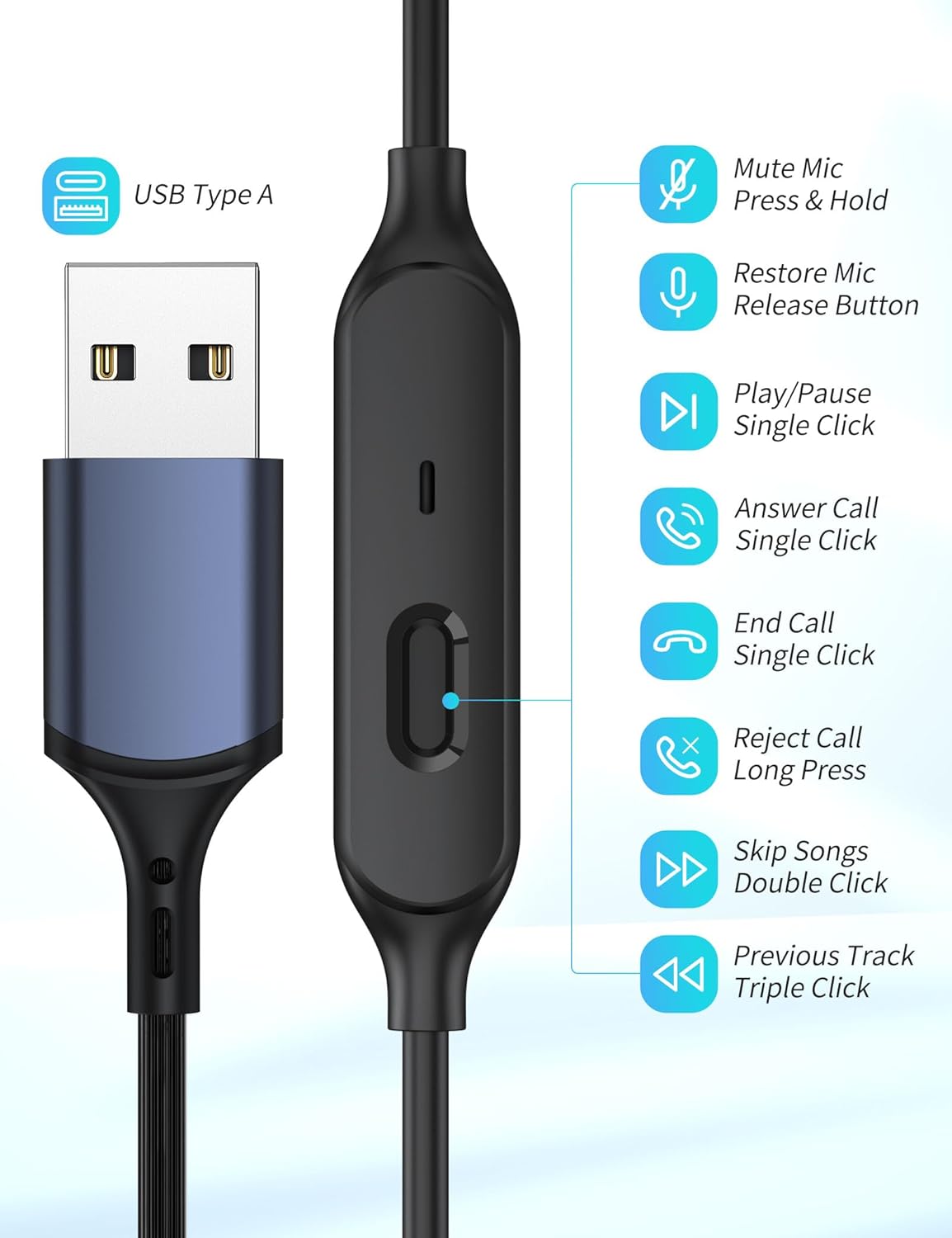 Secure Wingtips USB Headphones for Apple,for Samsung,for Google,for Desktop, Laptop, Computer PC, Game Controller with USB A Port. Works for Windows 10, Win 11, 8.1, 8, 7, Vista, XP, for Mac OS, for Chrome OS and for Linux. Support Play,Pause, Skip Songs, Mute Mic without approaching the devices