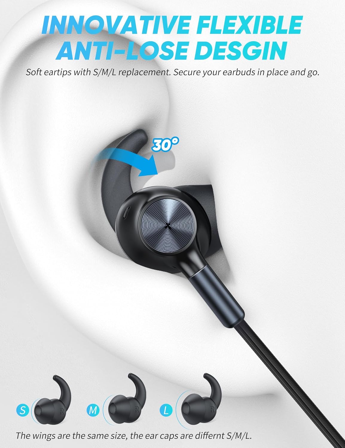 Innovative Anti-loose Design USB-A Earbuds for Mac OS, for Windows, for Chrome OS, for Linux, for Vista, for XP Devices with USB 2.0 Port, Designed with Flexible secure wingtips for stability and all-day comfort, 8.5FT Extended Trangle Free Wire, Magnetic Design for Neck Wearing, 3 size S M L Eartips replacement to fit all groups, Zipper Case for Convenience Carrying and Storage, Perfect for School, Home, Office, Travel, Etc.