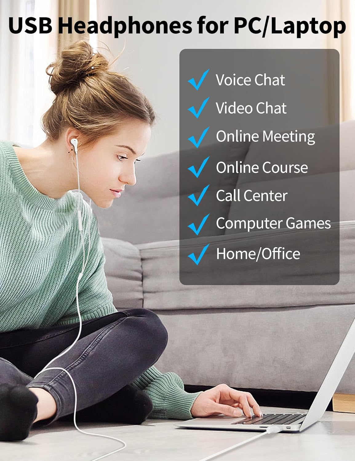 USB Headphones with Microphone for Laptop, 7.5ft Magnetic Wired Earbuds Noise Isolation in-Ear Earphones with Mute Volume Control Stereo Bass for PC Desktop Dell HP Acer Laptop Meetings/Music,School