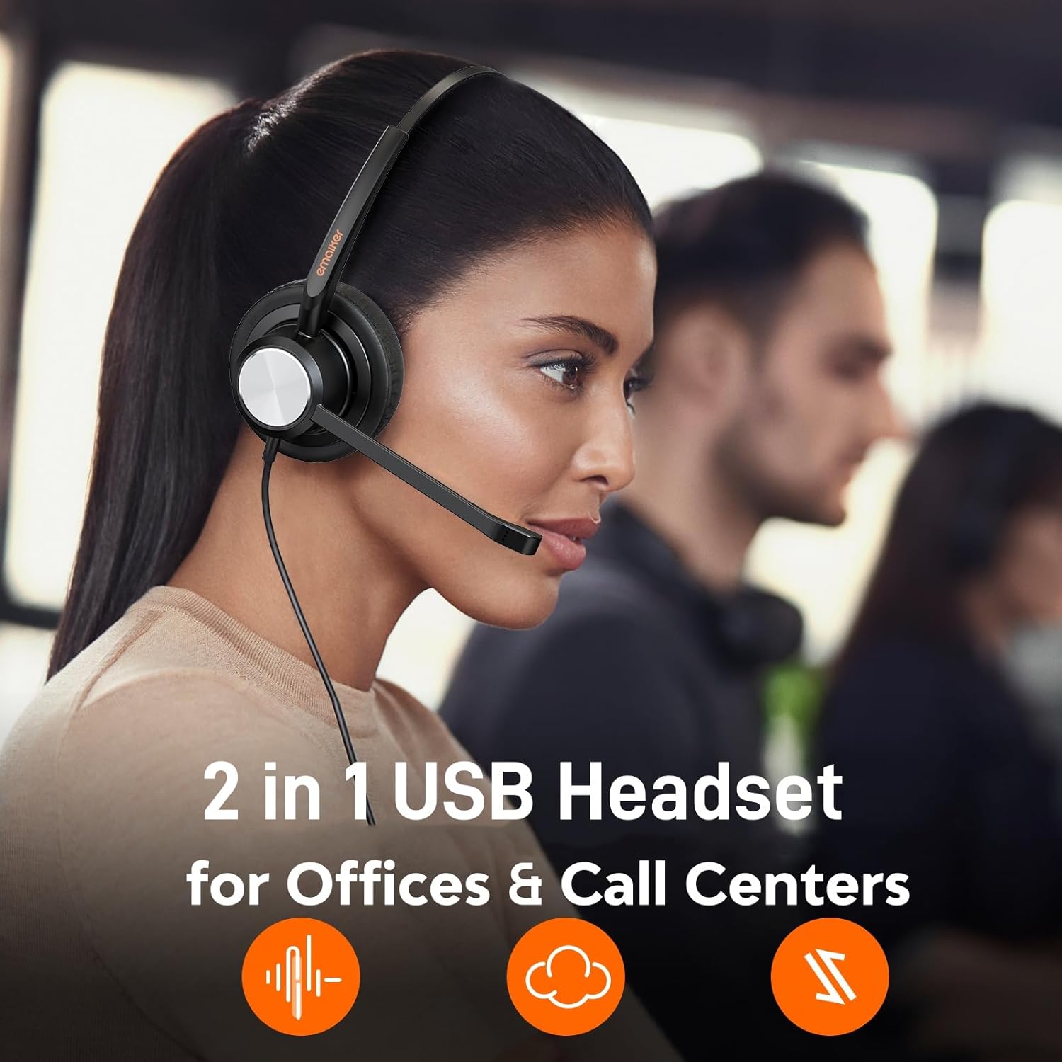 3.5MM &USB HEADSET(2 IN 1): this wired computer headset USB comes with 3.5mm jack for cellphones, mobiles, smart phones and tablets and laptops and a USB adapter as a computer headset with noise cancelling mic for PC,laptop. It works with ISO,Android cellphones and Windows 2000/7/8/10/11, Mac iOS and leading UC Platforms, Softphone. Ideal for Skype Chat,office, telemarketing, Call Center, Conference calls, Dictation, Dragon speak, Online courses, Webinar presentations and more.