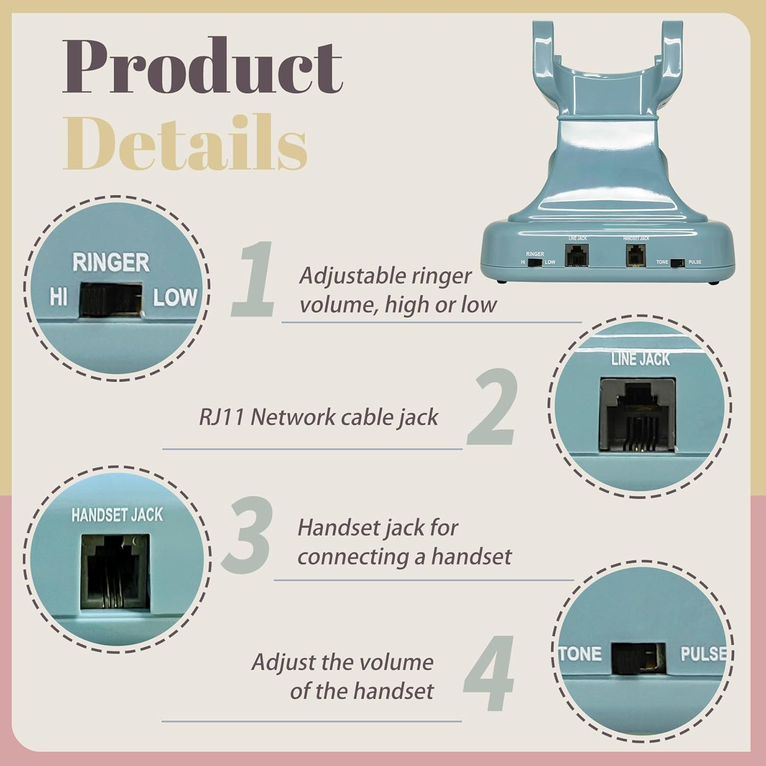 Easy Push Button Dialing – Unlike old rotary phones, this vintage phone features simple push-button dialing. The large ABS buttons are durable, easy to press, and clearly visible. With adjustable ringer volume, it’s especially friendly for seniors or those with hearing difficulties.