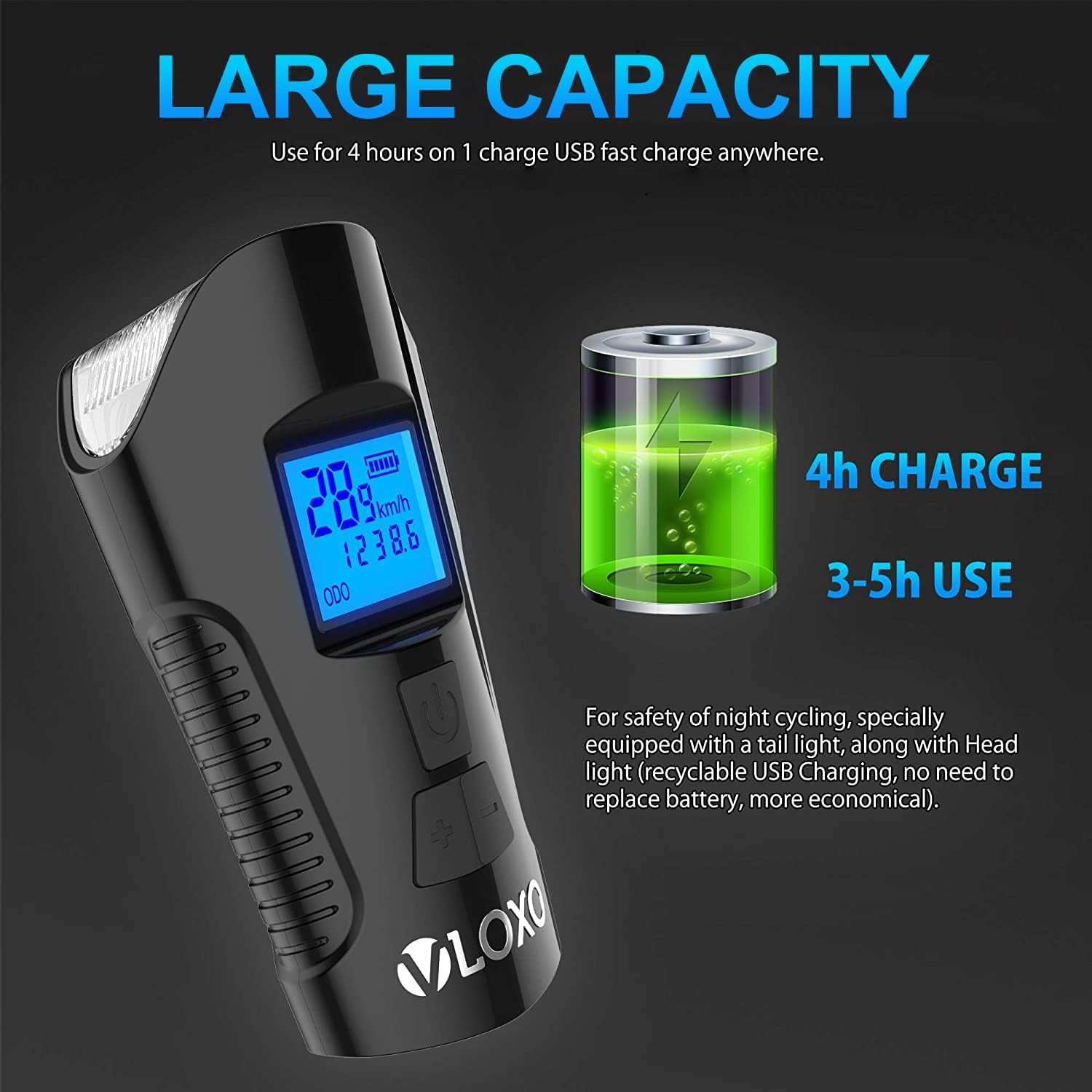 🚲【Wide Application & After-sales service】This bicycle light can be used as a regular flashlight for hiking, camping, walking, home or office power failure emergency flashlight, nighttime family/kids activities, etc. Road bicycles, mountain bikes, folding bikes, and other common bicycles are compatible with this bicycle speedometer.All VLOXO products comes with a 12-month warranty & 30 days return guarantee,worry-free Guarantee Any questions, please contact us directly in amazon.