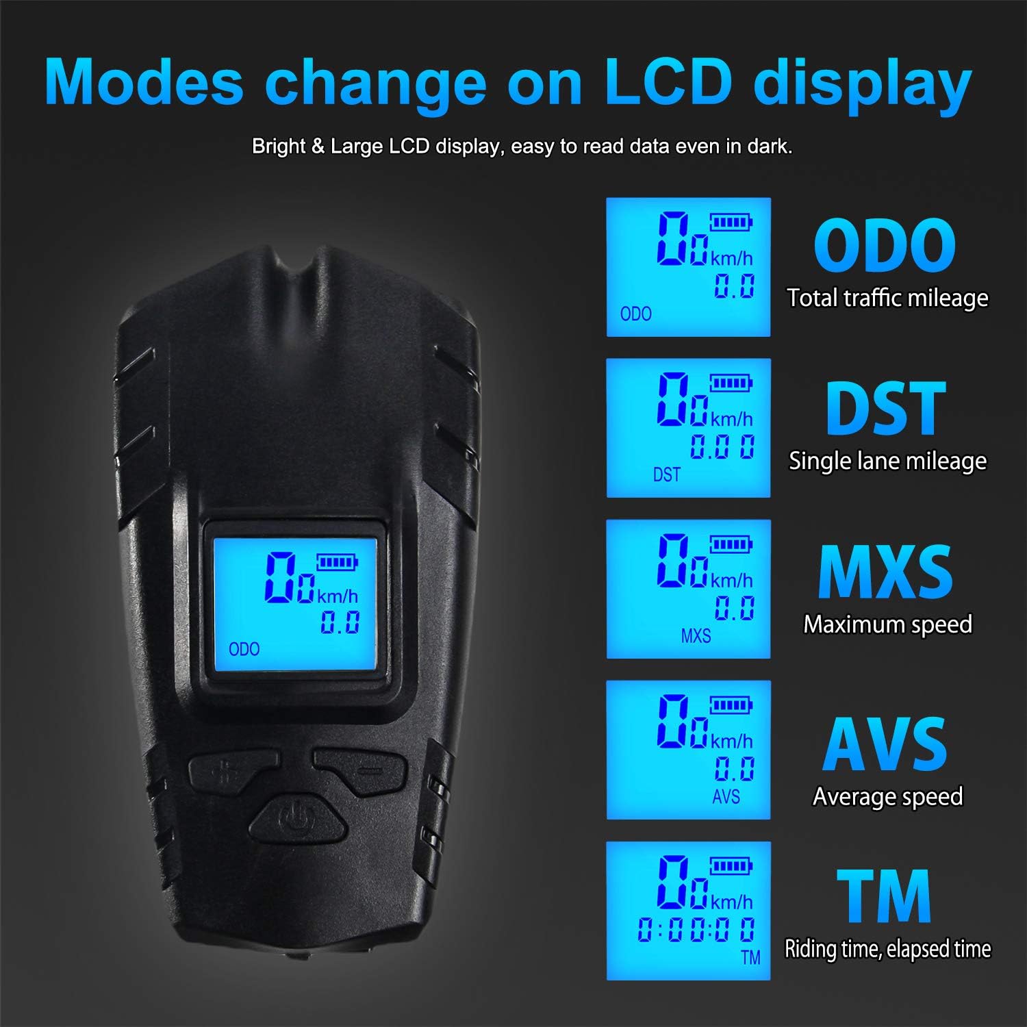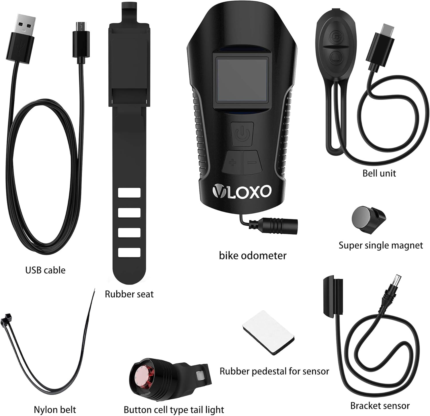 🔔【LED Bike computer &Loud horn】With real-time and accurate measurement values, VLOXO bike computer can view the total distance, maximum speed, average speed, cycling time and one-way travel distance, accurately and comprehensively record your every ride, if the speed data has a problem, please contact us, we will provide a satisfactory solution within 12h. The bicycle horn can emit a warning sound up to 120 dB, and there are 6 different sounds that can be adjusted.