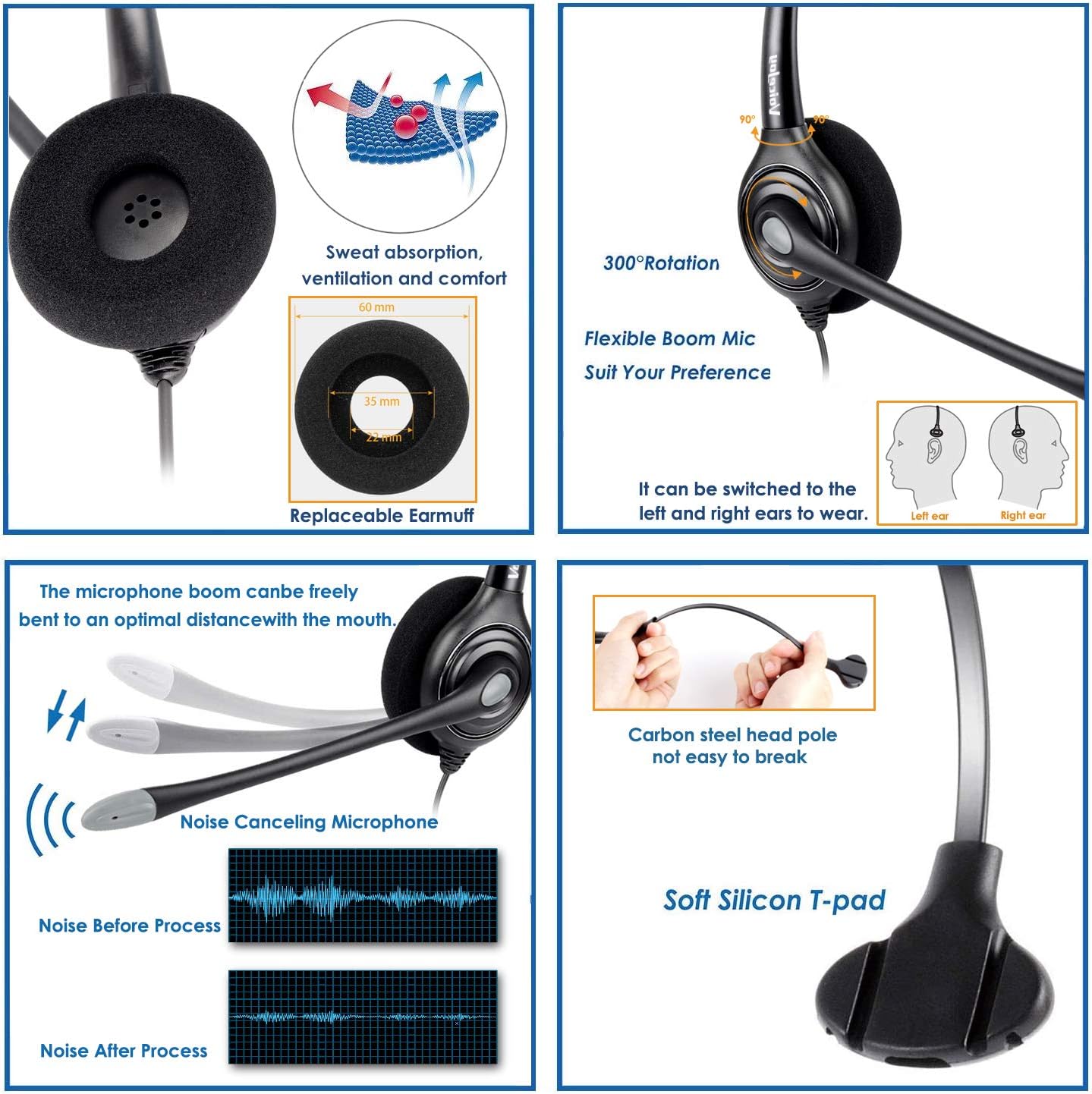 High Sound Quality for Clear Communication: Wideband Sound telephone headset enables natural listening experience, features Noise Canceling Microphone to reduce background noise, Acoustic Shock Protection Circuit to protect your hearing.