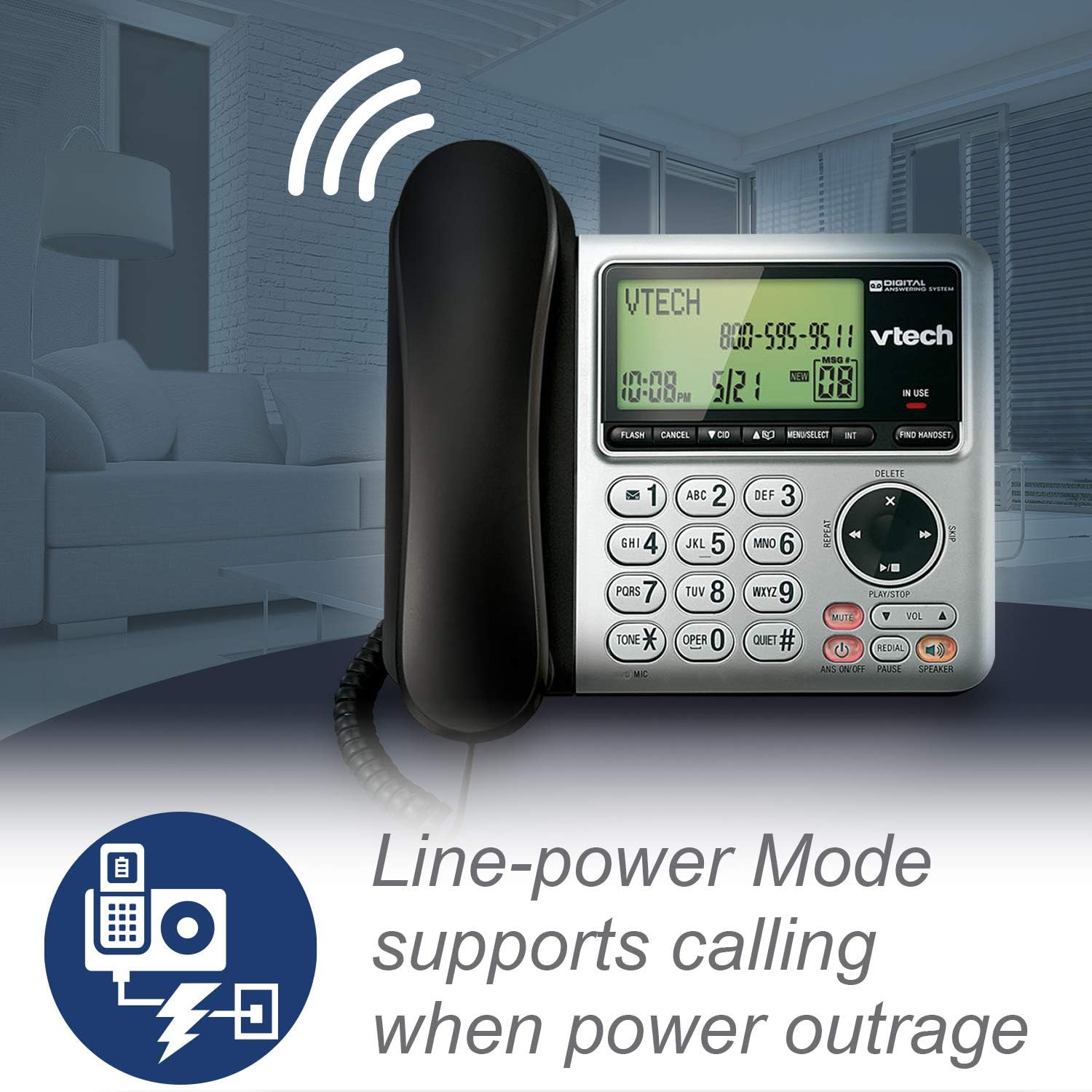 VTech CS6649 DECT 6.0 Expandable Corded/Cordless Phone with Answering System and Caller ID/Call Waiting, Silver/Black with 1 Handset