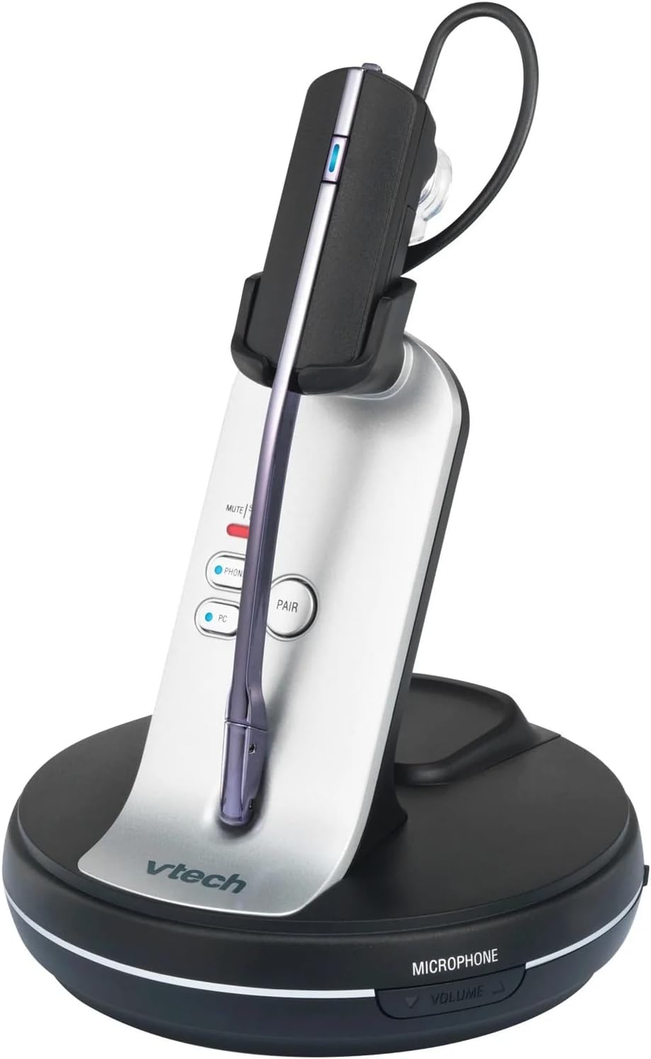 The VTech VH6210 softphone compatible Convertible DECT office wireless headset for business desk phones keeps your customers on the line, even when you’re on the move. Up to 500 feet of range means you can still experience long-range coverage and clarity from virtually anywhere in the office. The headset works with major softphone services. Answer and end calls directly from the headset with the VTech electronic hookswitch (ehs) kit sold separately. OR, you can attach your curly handset cord to the VH6210 base. Compatible with most major desk phone brands, the VH6210 Convertible office wireless headset is comfortable enough for all-day use. Choose how you want to wear it: over-the-ear, over-the-head or behind-the-neck. Never run out of battery during long calls. If the charge is low, you can swap the headset’s battery mid-conversation. Easily multitask with one-touch call, answer, volume and Mute. Hd voice quality ensures your calls sound rich and life-like. Plus, DECT 6.0 technology cuts down on interference and static, giving you calls that are crisp, clear and secure.