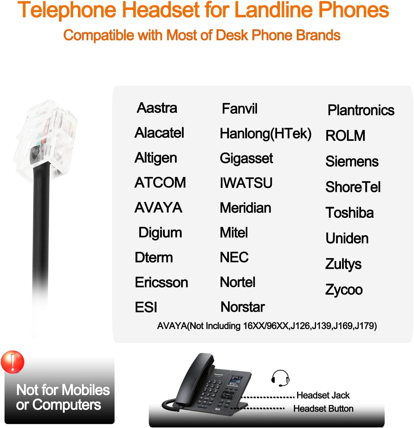 Home Headsets & Earphones Wired Headsets For Calls Wired Call Center Desk Phone Headset with Noise Cancelling Microphone & U10P QD Cable, Office RJ9/RJ11 Telephone Headset Works for Mitel Nortel Htek Avaya Polycom VVX Shoretel Aastra Digium IP Phones