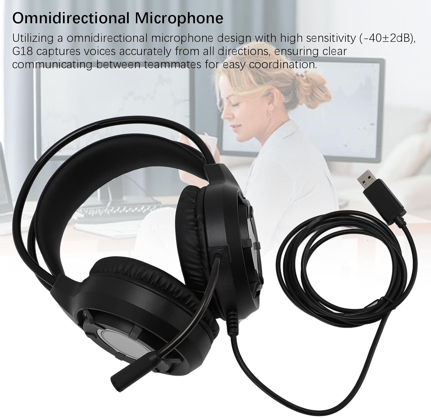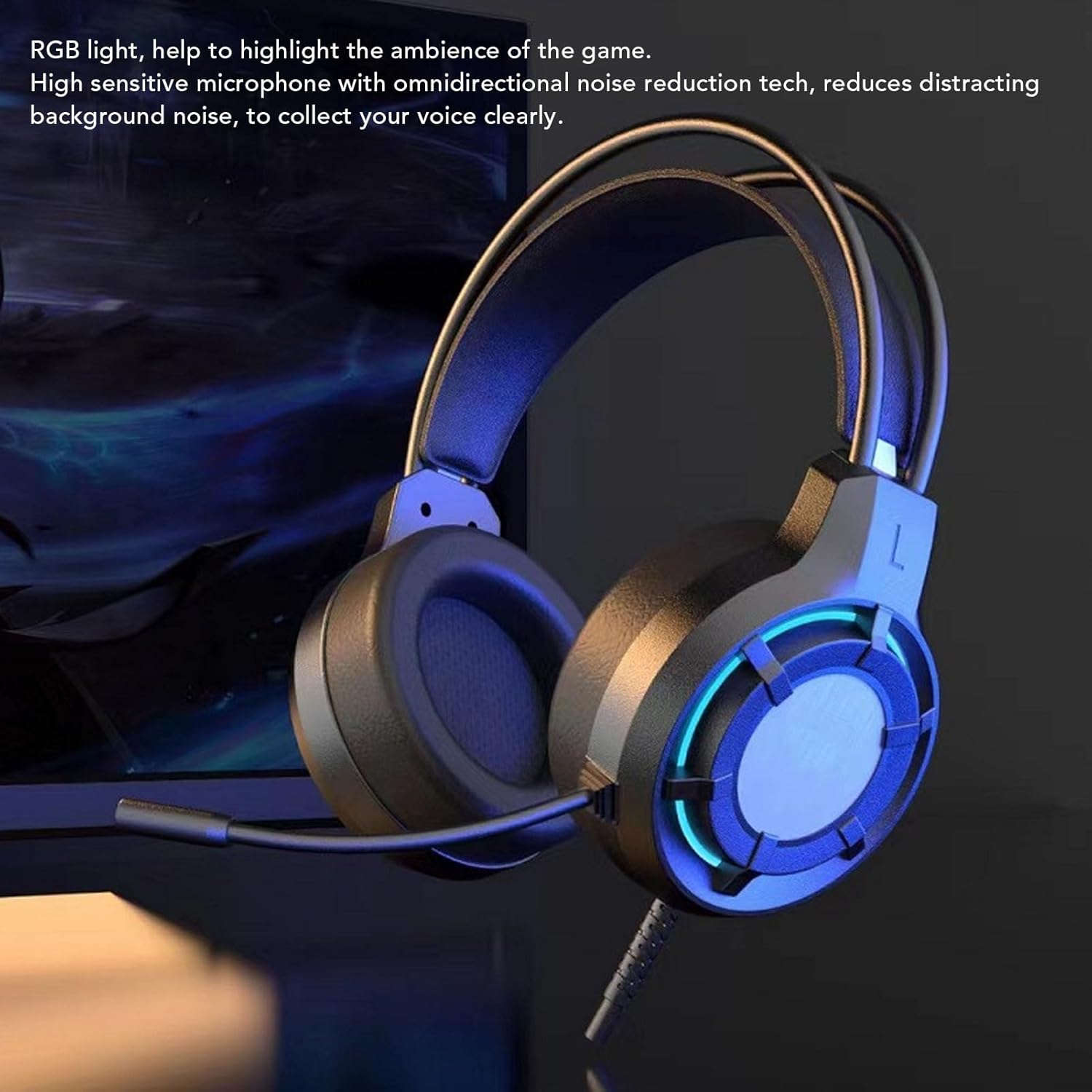 • Wired USB Gaming Headse, RGB Flowing Light Computer Headphones, USB Headset with Omnidirectional Mic, for Laptop, Call Center