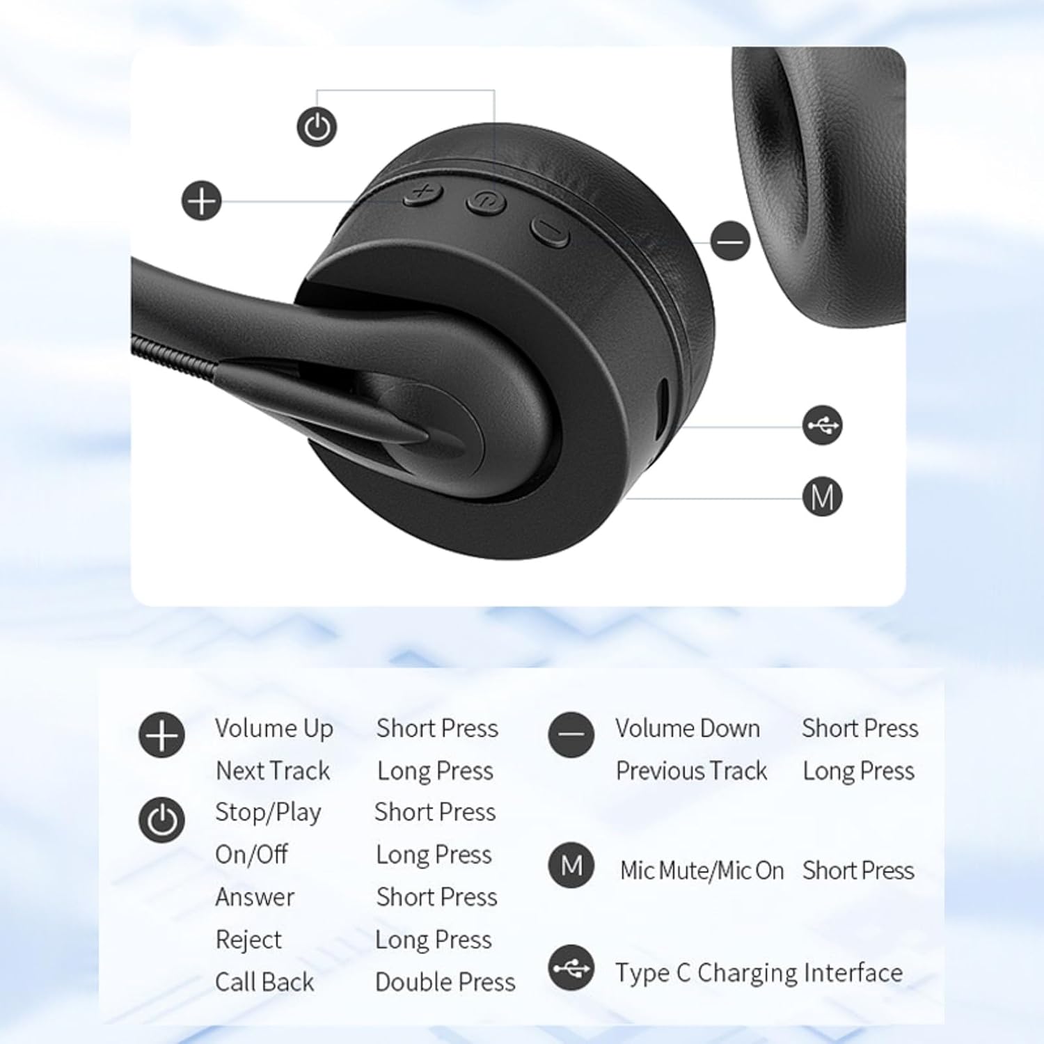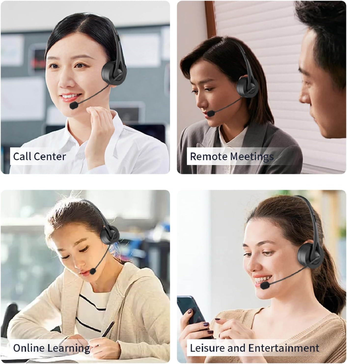 Bluetooth Headsets with Noise Cancelling Mic: Wireless headsets with microphones feature powerful ENC noise cancelling technology that eliminates 95% of disturbing noise, providing clear calls even in noisy environments. It’s perfect for truck drivers, offices, work, and call centers