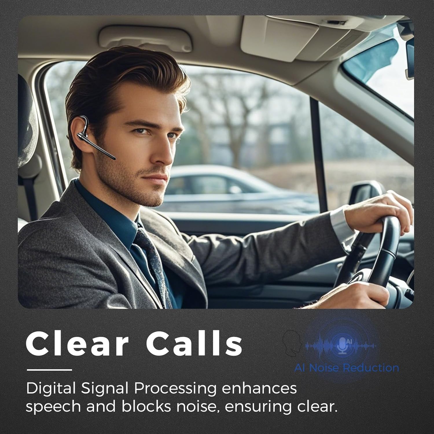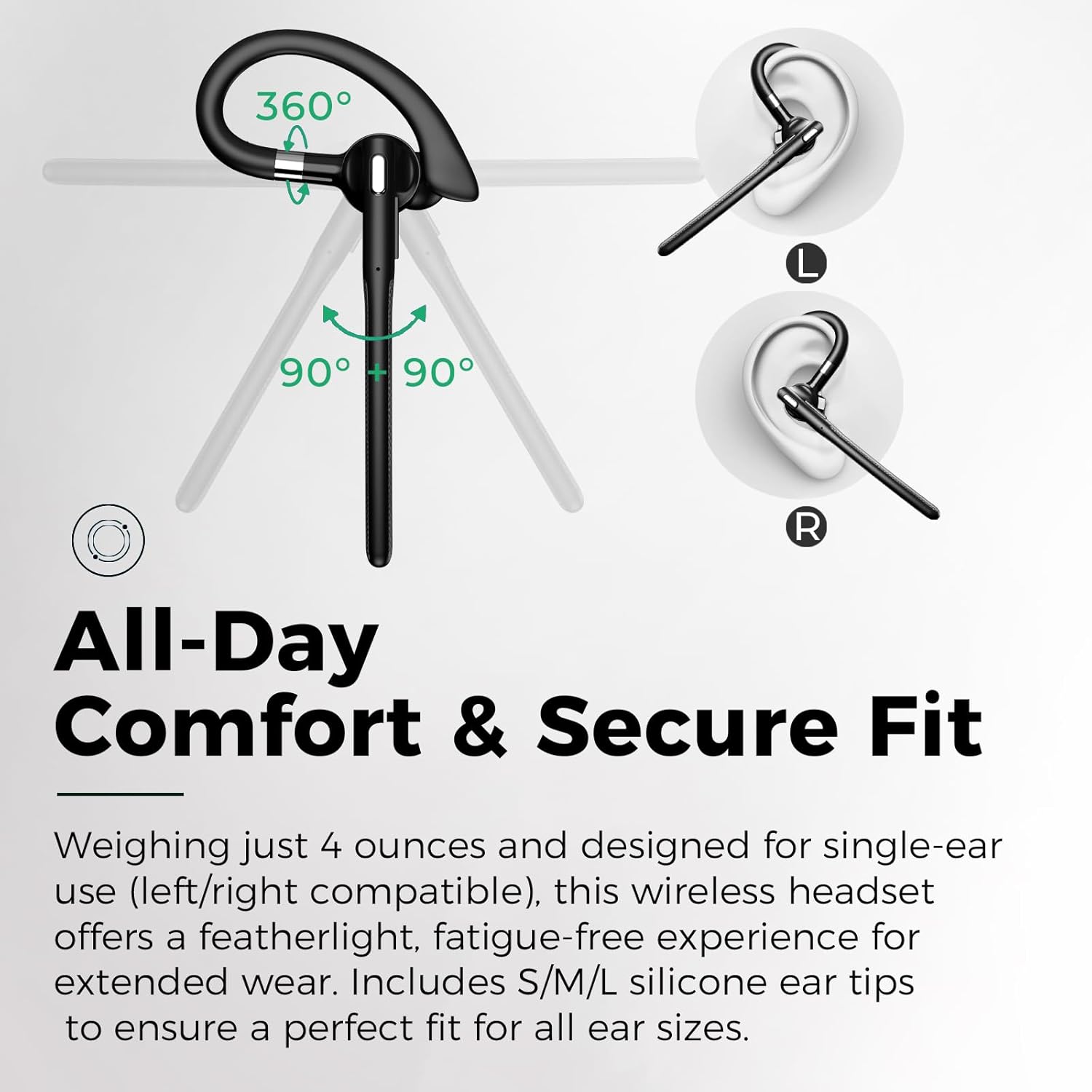 [All-Day Comfort & Secure Fit]–Weighing just 4 ounces and designed for single-ear use (left/right compatible), this wireless headset offers a featherlight, fatigue-free experience for extended wear. Includes S/M/L silicone ear tips to ensure a perfect fit for all ear sizes. The ergonomic shape stays securely in place during calls, commutes, or driving, making it ideal for professionals on the move.