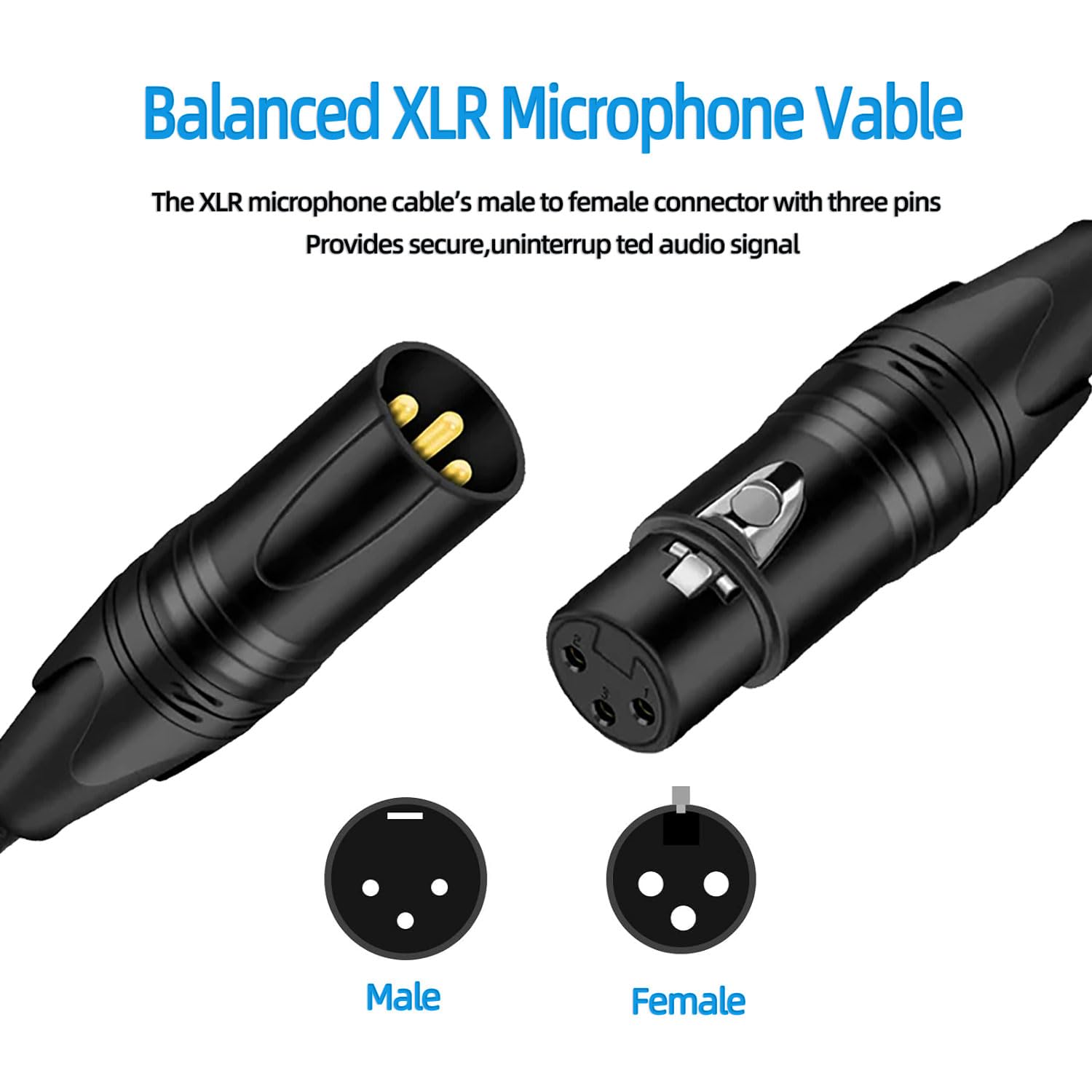 【Microphone Cord GREAT CONSTRUCTED】: Microphone XLR Cable,Two twisting conductors, and dual shielding both Aluminium foil and braided copper strands effective for resisting EMI & RFI.What You Get: The package includes 2pack male-to-female XLR cables. Worry-free customer service. If you have any questions, we will solve your problem within 24 hours