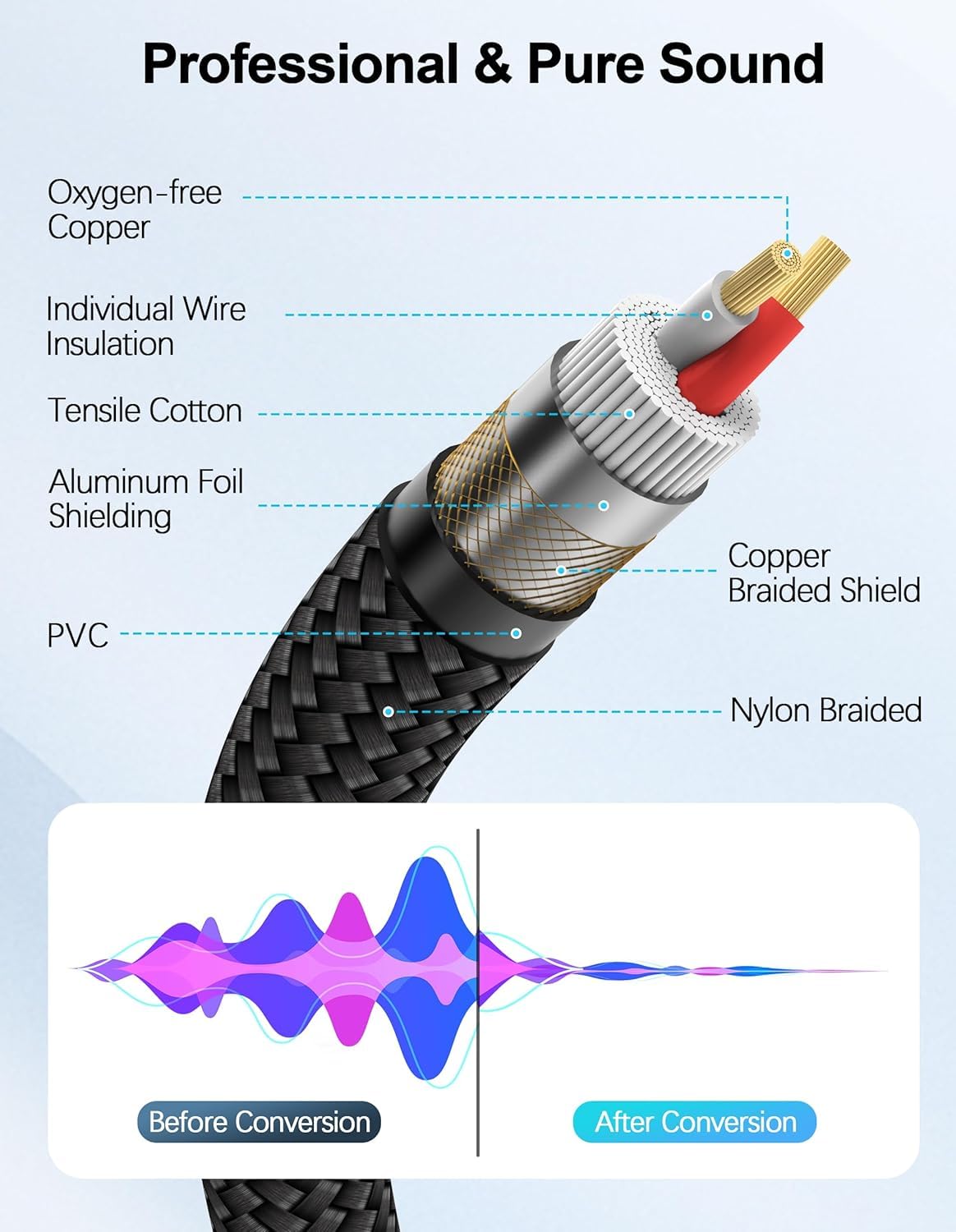 𝐔𝐥𝐭𝐫𝐚-𝐂𝐥𝐞𝐚𝐧 𝐒𝐢𝐠𝐧𝐚𝐥 𝐓𝐫𝐚𝐧𝐬𝐦𝐢𝐬𝐬𝐢𝐨𝐧 – 𝐇𝐞𝐚𝐫 𝐄𝐯𝐞𝐫𝐲 𝐃𝐞𝐭𝐚𝐢𝐥: Crafted with high-purity Hi-OFC (Oxygen-Free Copper) and precision-twisted pairs, this cable delivers ultra-low signal loss and low capacitance for rich, crystal-clear audio. Perfect for recording vocals, streaming, or live mixing—every nuance comes through.