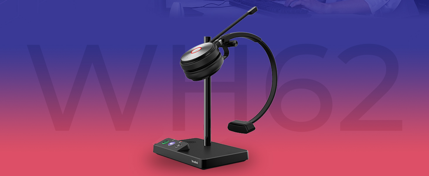 Bundle of 3 items – Yealink WH62 Mono (Teams certified) wireless DECT headset, charging headet stand, and microfiber cloth for a complete plug-and-play setup