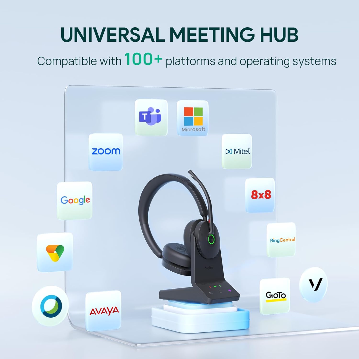 606ft DECT & BT Dual-Mode: Revolutionize your workflow with dual-mode wireless headphones, supporting simultaneous connection to 3- devices(PC/desk phone/mobile). Enjoy ultra-long 606ft wireless range,secure encrypted calls, and robust interference resistance in dense office.