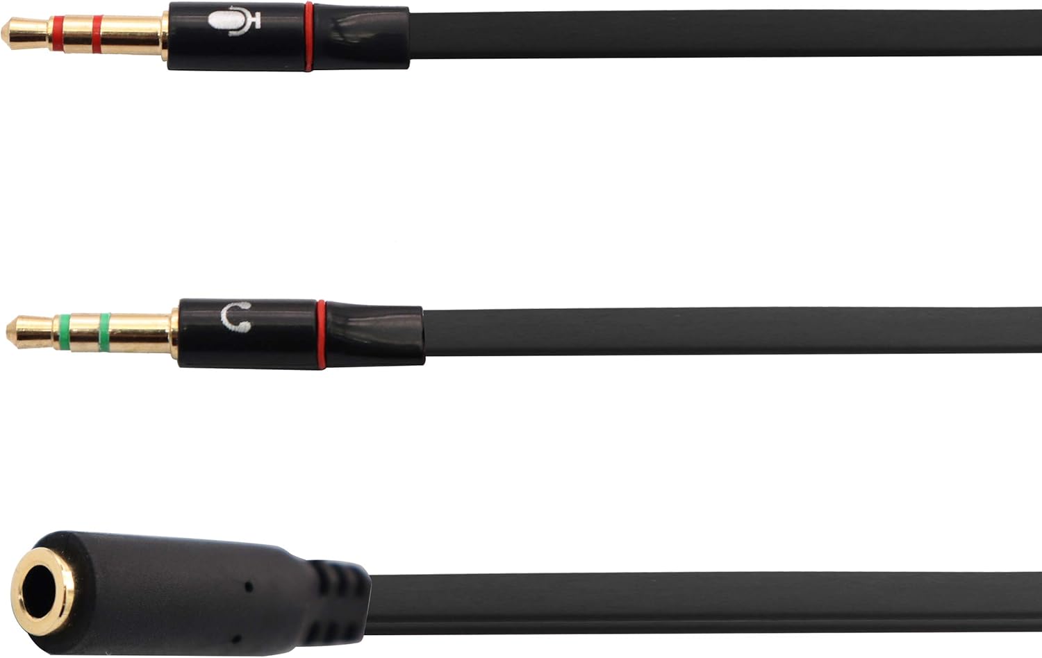 Features: Gold-Plated (4-Pole) 3.5mm 1/8″ inch AUX Female to 2 Port (3-Pole) 3.5mm Male Headset Mic & Stereo Audio Y Splitter Cable