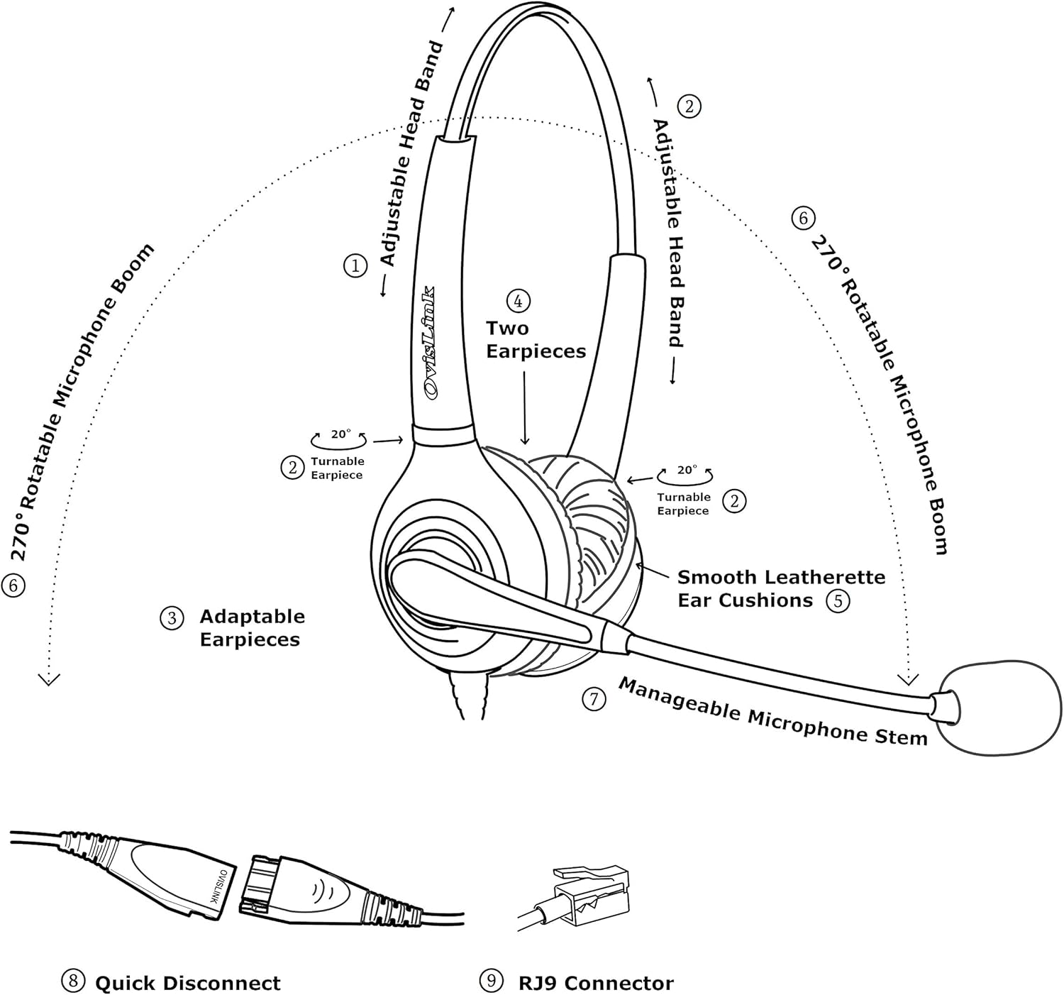 ✅ OvisLink model OVHS084-ZIP, Corded Dual Ear Noise Canceling Call Center headset, Acoustic Shock Protection